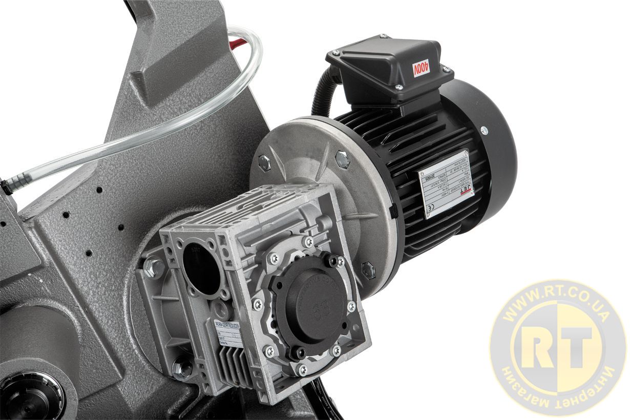 Ленточнопильный станок оснащен мощным двигателем в 1,1 кВт с надежным передающим высокий крутящий момент редуктором для промышленной эксплуатации и режимом работы 24/7. Скорость движения ленточного полотна выбирается из двух установленных скоростей 36 и 72 м/мин для пиления разных материалов.