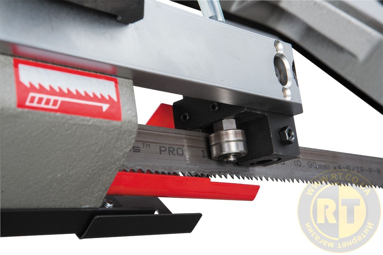 Станок имеет направляющие, передвигающиеся по консоли и регулирующие проход полотна в зависимости от диаметра заготовки. В направляющих установлены подшипники и сухарики, осуществляющие позиционирование ленточного полотна под углом 90 0 к обрабатываемой заготовке. Сила натяжения полотна определяется показаниями тензометра и регулируется вручную. Станок MBS-1013CSD в снаряженном состоянии весит 360 кг.