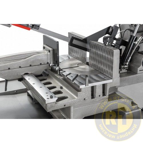 - Гидравлические тиски с широкими рифлеными губками для быстрого и надежного зажима заготовки. Давление легко перемещается параллельно к заготовке и дает возможность пилить под разными углами. Губки быстро переставляемых тисков позволяют сэкономить время при перенастройке на заготовки с другим сечением.
