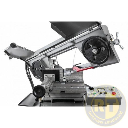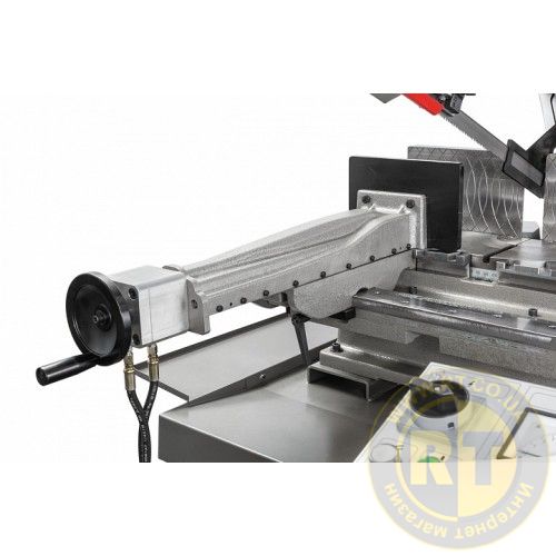 - Встроенный стрелковый амперметр показывает нагрузку при пилении, позволяет оценить правильность выбора режимов резки и контролировать уровень износа ленточного полотна.