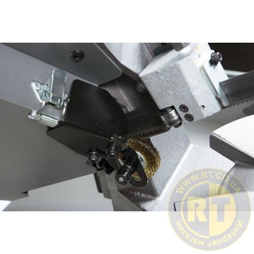 - Удобный тензометр поможет оптимально натянуть полотно. Установленная на станке щетка гарантирует очистку полотна от большой стружки, которую не вымоет СОЖ.