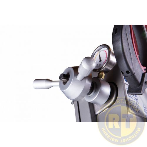 - Помимо направляющих подшипников дополнительно установлены направляющие сухари, которые гарантируют, что полотно будет иметь 90° по отношению к заготовке, а регулировка направляющей понадобится для выставления диаметра пиления, чтобы уменьшить износ полотна.