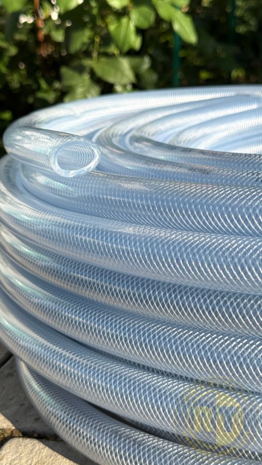 Міцний зовнішній захисний шар робить цей шланг стійким до різних механічних пошкоджень і протирання. Проміжний середній шар являє собою особливо міцне хрестоподібне обплетення, виготовлене з поліестерної нитки, воно робить шланг максимально стійким до дії високого тиску, гарантовано витримує робочий тиск до 10 атмосфер. Внутрішній гладкий шар виготовлений з ПВХ не містить у своєму складі шкідливих хімічних домішок, а також не створює опору потоку рідини всередині шланга.