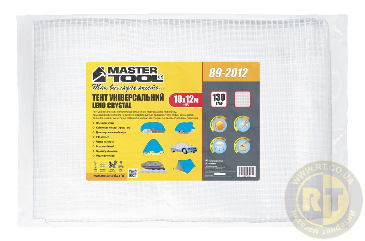 Тент универсальный армированный TARPAULIN 10 × 12 м 130 г/м² Leno Crystal MASTERTOOL 89-2012