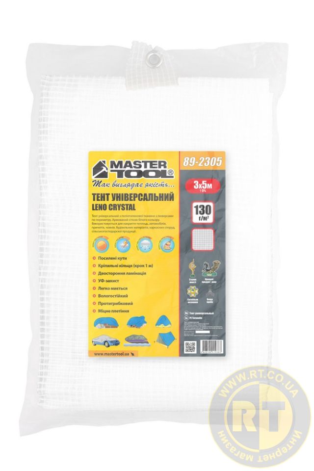 Тент универсальный армированный TARPAULIN 3 × 5 м 130 г/м² Leno Crystal MASTERTOOL 89-2305