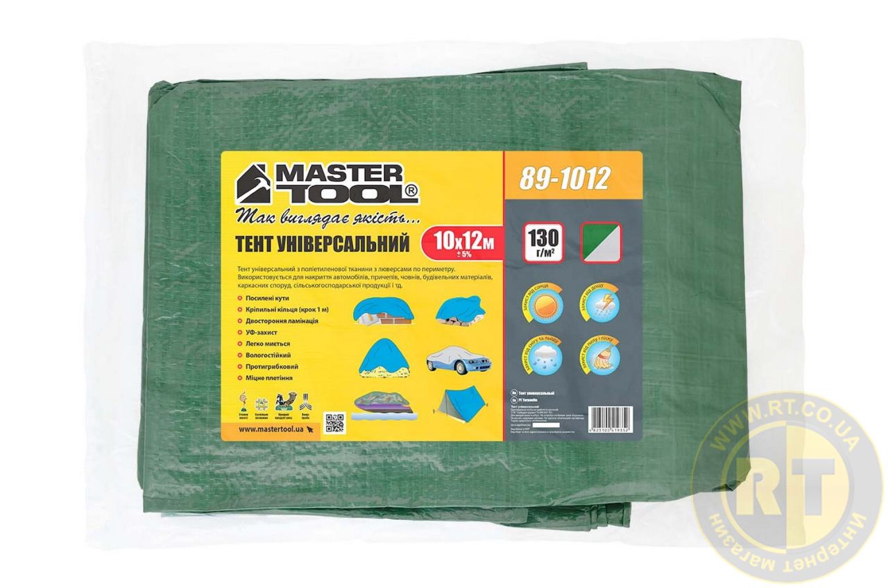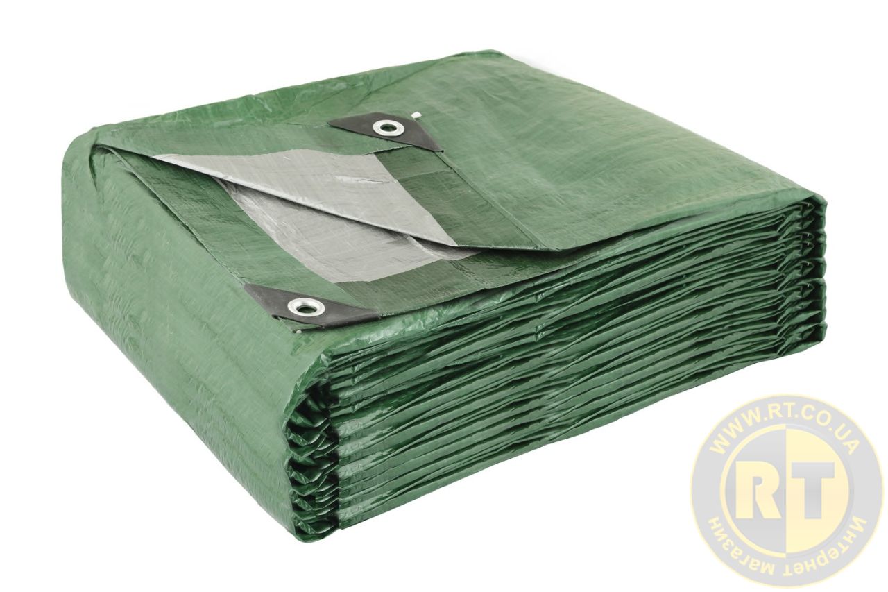 Тент универсальный TARPAULIN 10 × 12 м двухсторонний 130 г/м² Green/Silver MASTERTOOL 89-1012