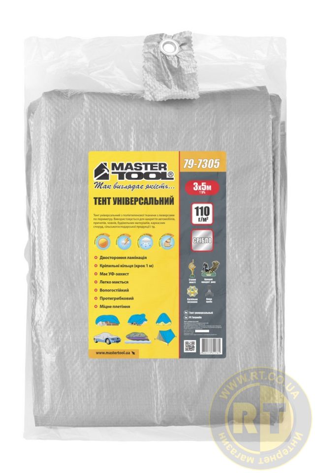 Тент универсальный TARPAULIN 3 × 5 м 110 г/м² SILVER MASTERTOOL 79-7305