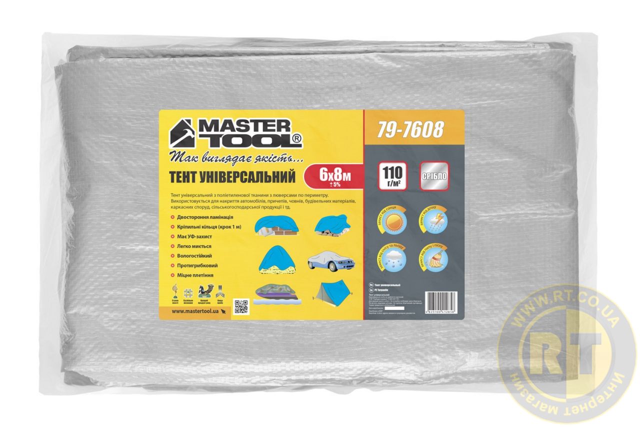 Тент универсальный TARPAULIN 6 × 8 м 110 г/м² SILVER MASTERTOOL 79-7608