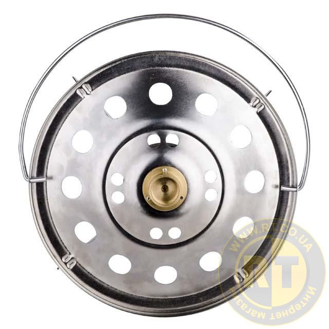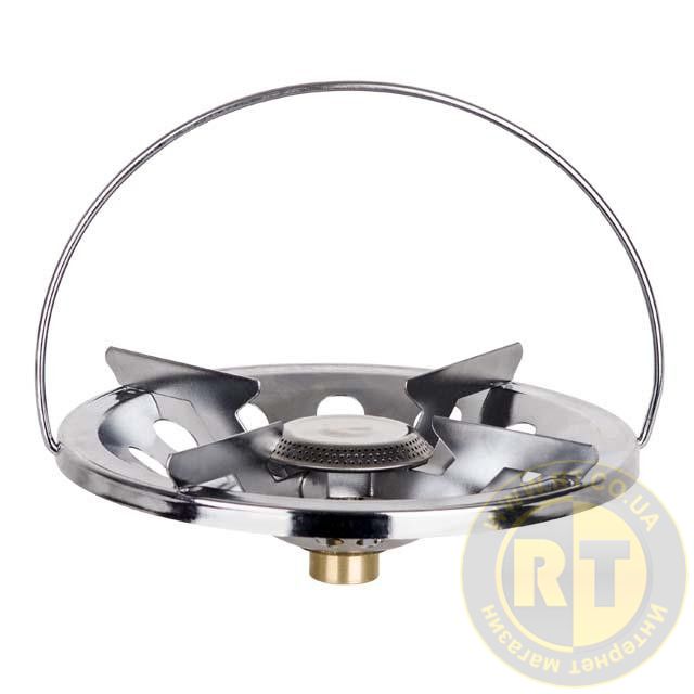 Тарелка с газовой конфоркой оснащена удобной ручкой для транспортировки всего баллона. Резьбовое соединение прочное и долговечное, изготовлено из латуни. Горелка используется для монтажа на баллон вместе с вентилем GS-0009.