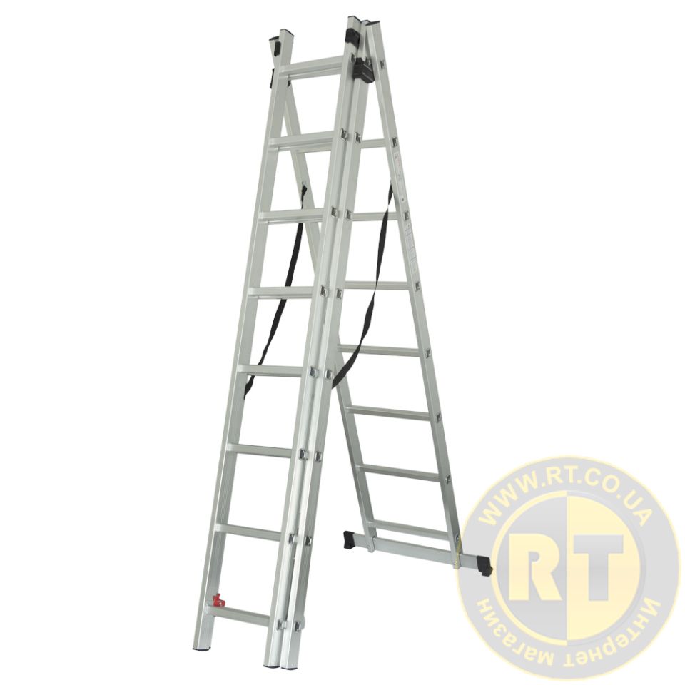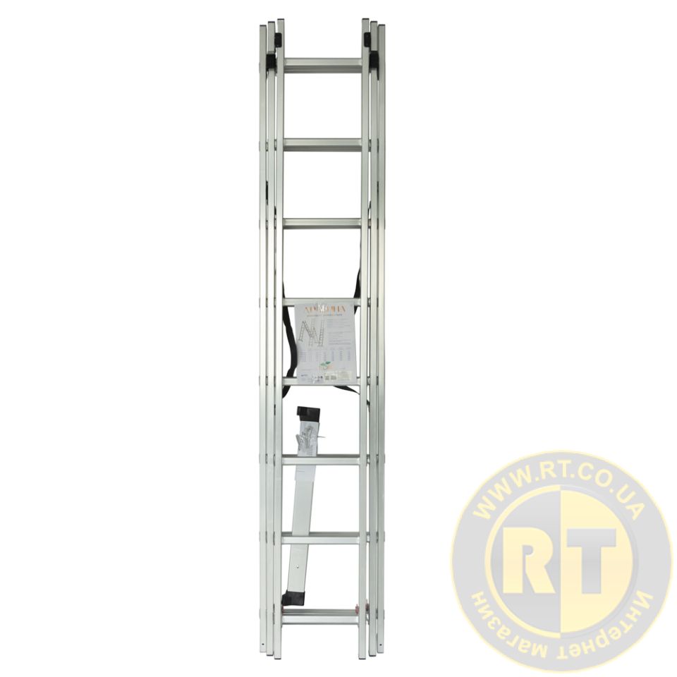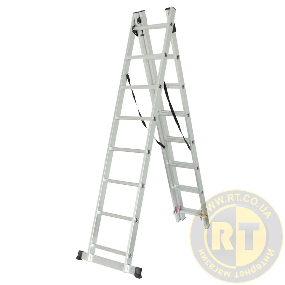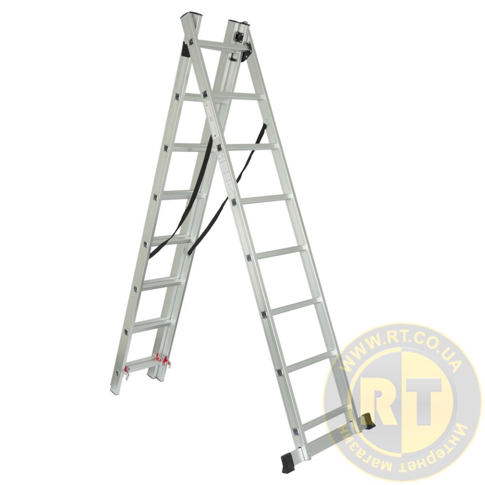 Лестница раскладывающаяся универсальная 8 ступеней 5.09м SIGMA (5032324) предназначена для внутренних и наружных строительных и ремонтных работ, уборки урожая в саду.