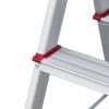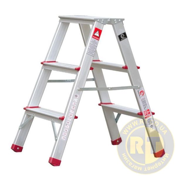 Стремянка изготовлена из прочного не ржавеющего алюминиевого профиля. Соответствует европейскому стандарту EN131 и выдерживает нагрузку до 150 кг. Профилированные широкие (8 см) ступени не позволят скользить ноге. Гарантируют безопасный подъем и удобное положение во время работы. Ступени крепятся к профилю многочисленными заклепочными соединениями.