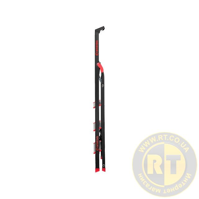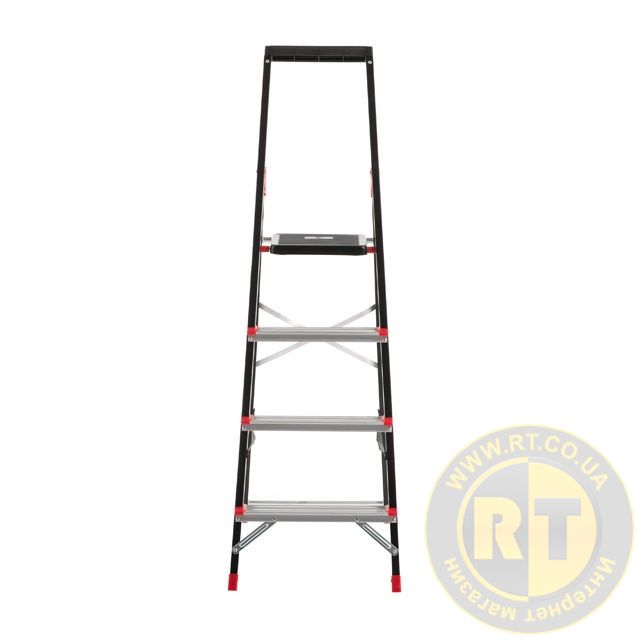 Стремянка изготовлена из прочного стального профиля с алюминиевыми ступенями. Рифленые ступени не позволят скользить ноге и обеспечивают безопасный подъем, а также удобное положение во время работы. Стремянка соответствует европейскому стандарту EN131 и выдерживает нагрузку до 150 кг.