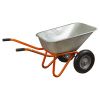 Тачка строительная двухколесная 100л 320кг колесо 15" (из 5-х ЧАСТЕЙ) FLORA (5056714) необходима при выполнении строительных и садово-огородных работ для перевозки строительных материалов, таких как щебень, песок, цемент, глина, сыпучих материалов.