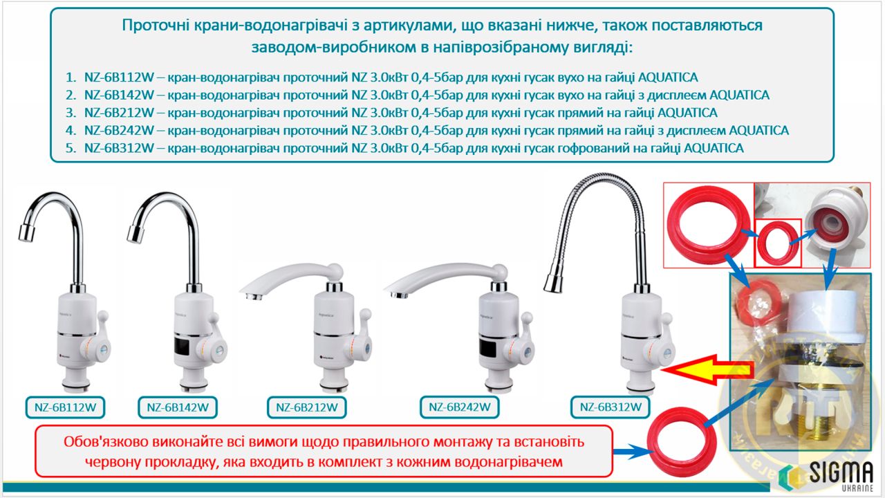 Кран-водонагреватель проточный NZ 3.0кВт 0.4-5бар для кухни гусак гофрированный на гайке AQUATICA NZ-6B312W (9797143)