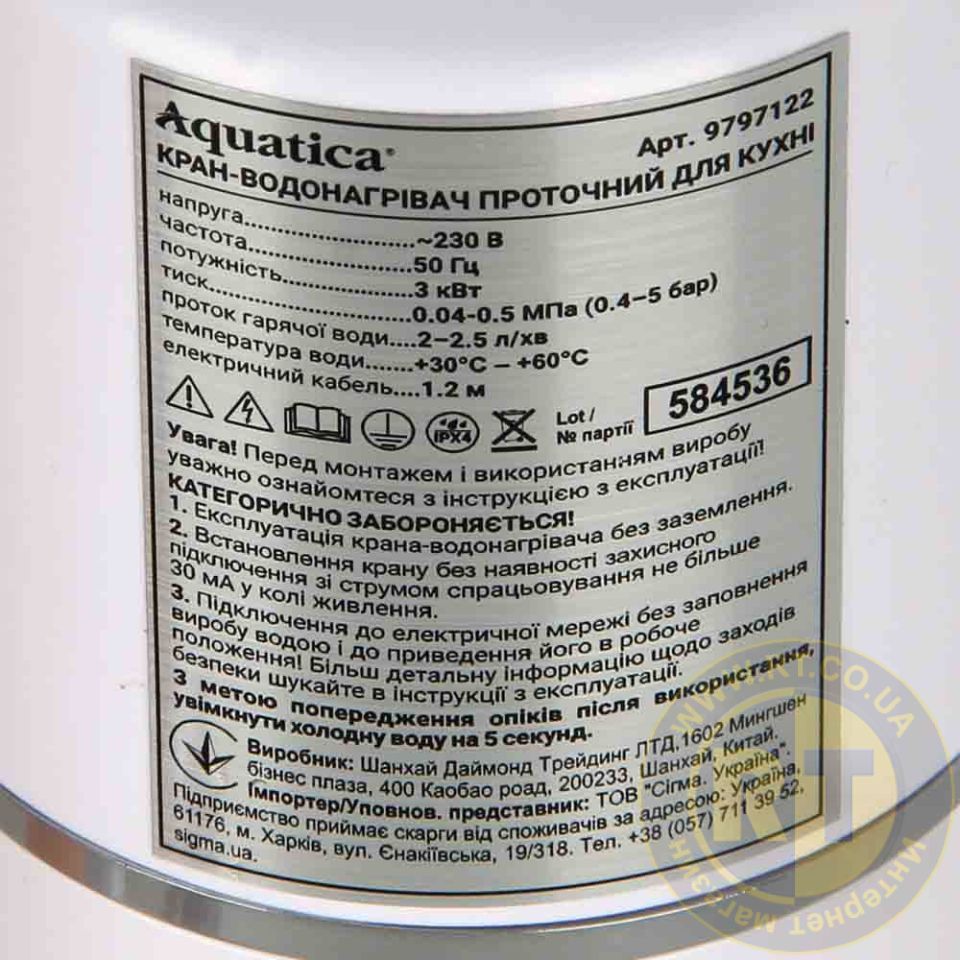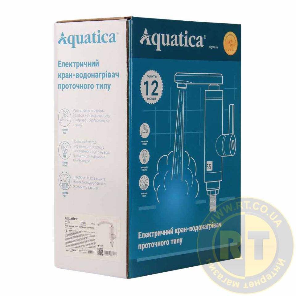 Кран-водонагреватель проточный NZ 3.0кВт 0.4-5бар для кухни гусак прямой на гайке AQUATICA NZ-6B212W (9797122)