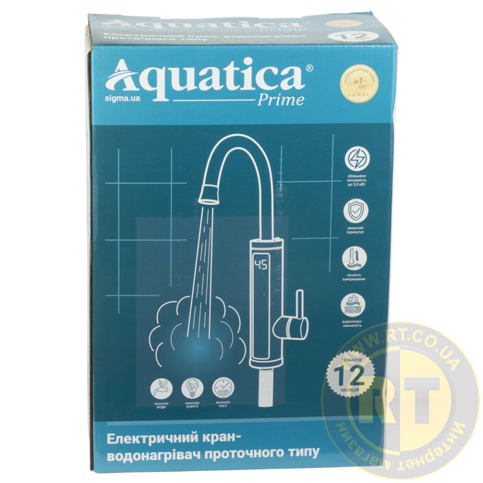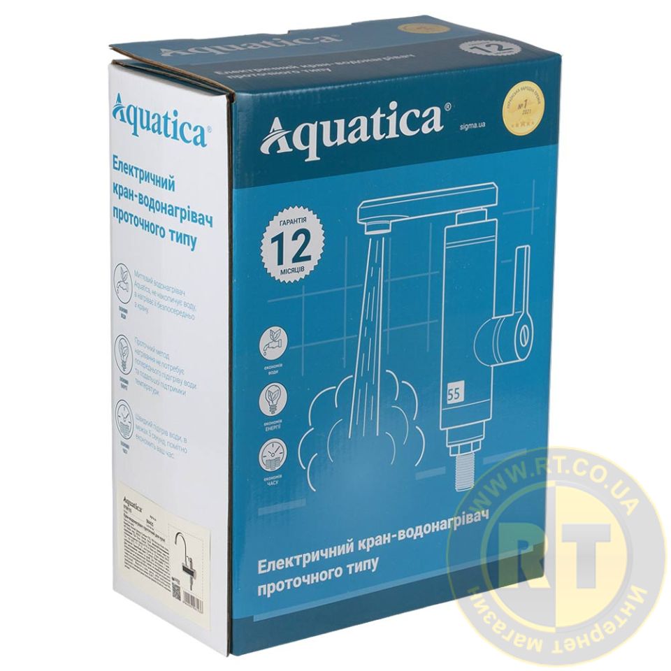 Кран-водонагреватель проточный s98 3.0кВт для кухни излив ухо на гайке с дисплеем AQUATICA (9798103)