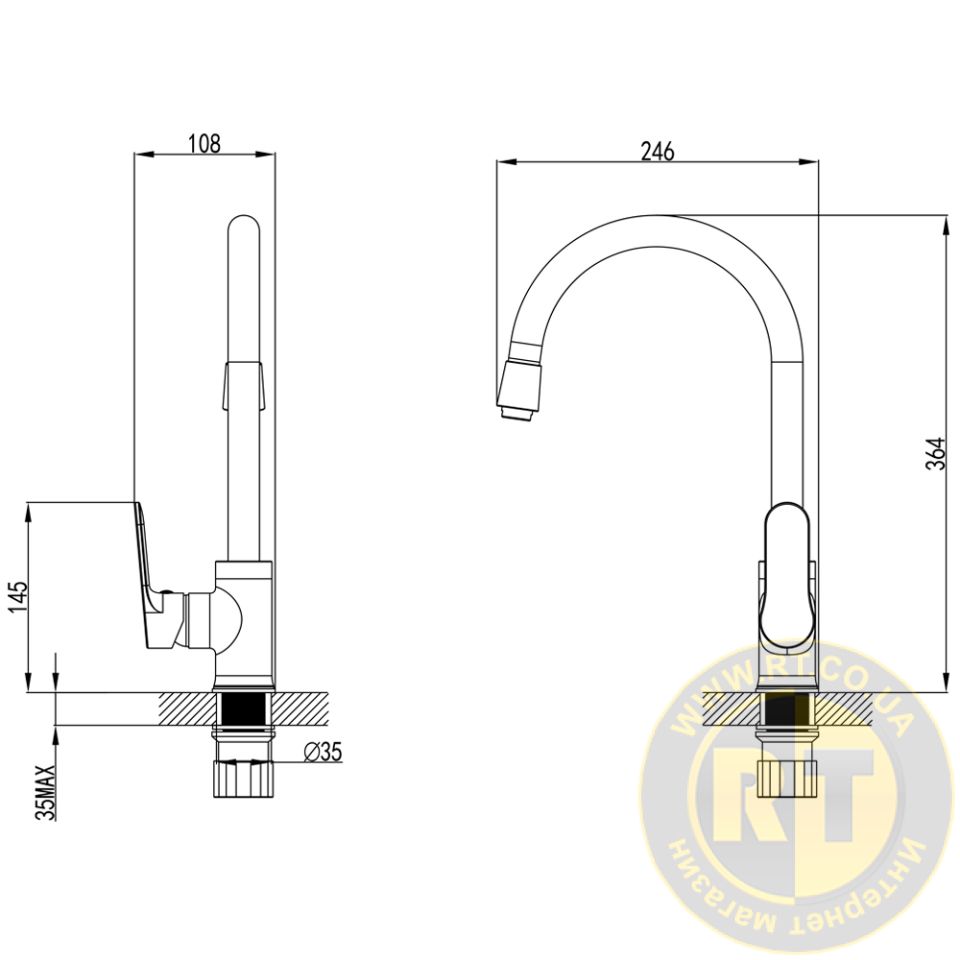 Смеситель MARMORE Ø35 для кухни J-излив на гайке CORSO DB-4B138C 9623100