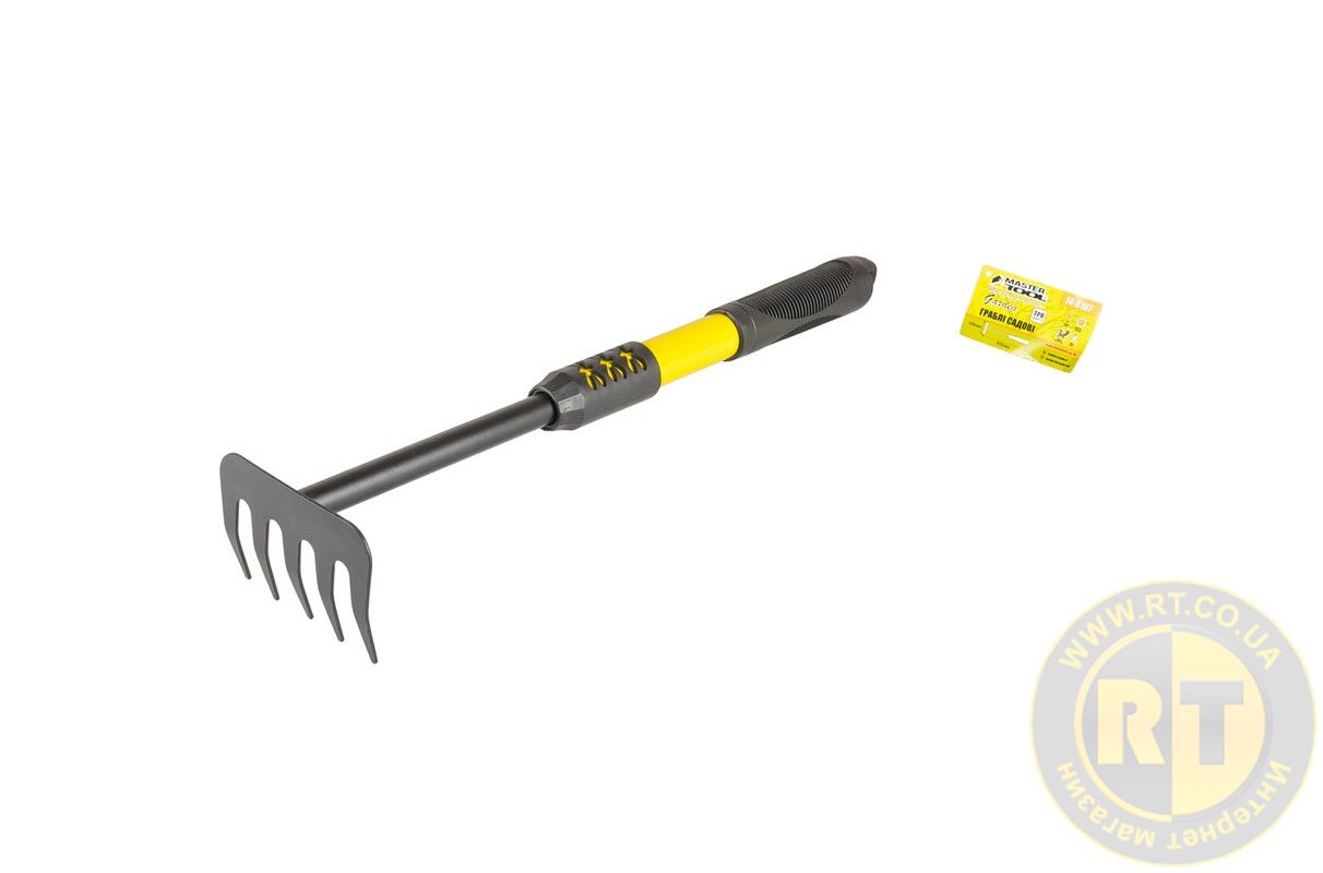Грабли садовые 5 зубьев 410×100 мм с удлиненной металлической ручкой MASTERTOOL 14-6167