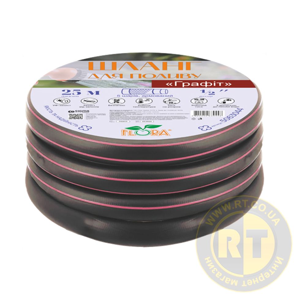 Шланг для полива Графит 5 слоев армированный ½" 50м FLORA (5063064)