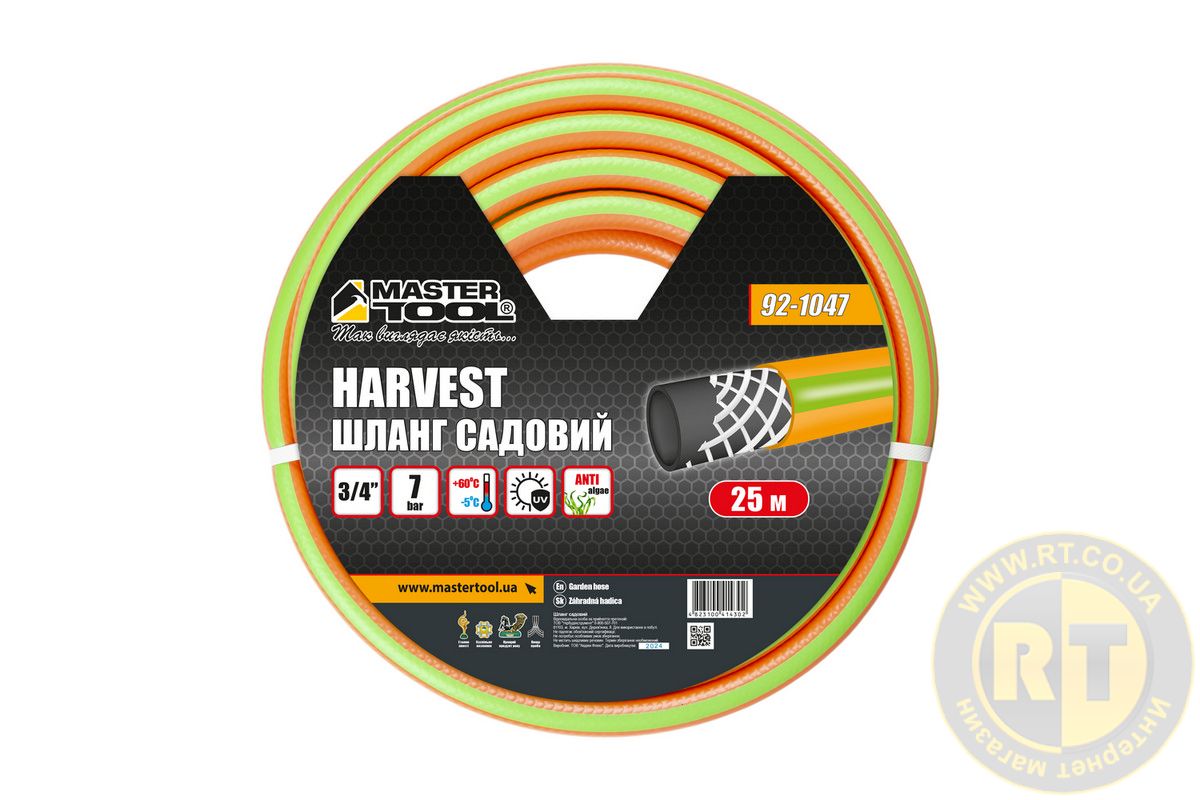 Шланг садовый для полива "HARVEST" 3-х слойный ¾" 25 м оранжевый MASTERTOOL 92-1047
