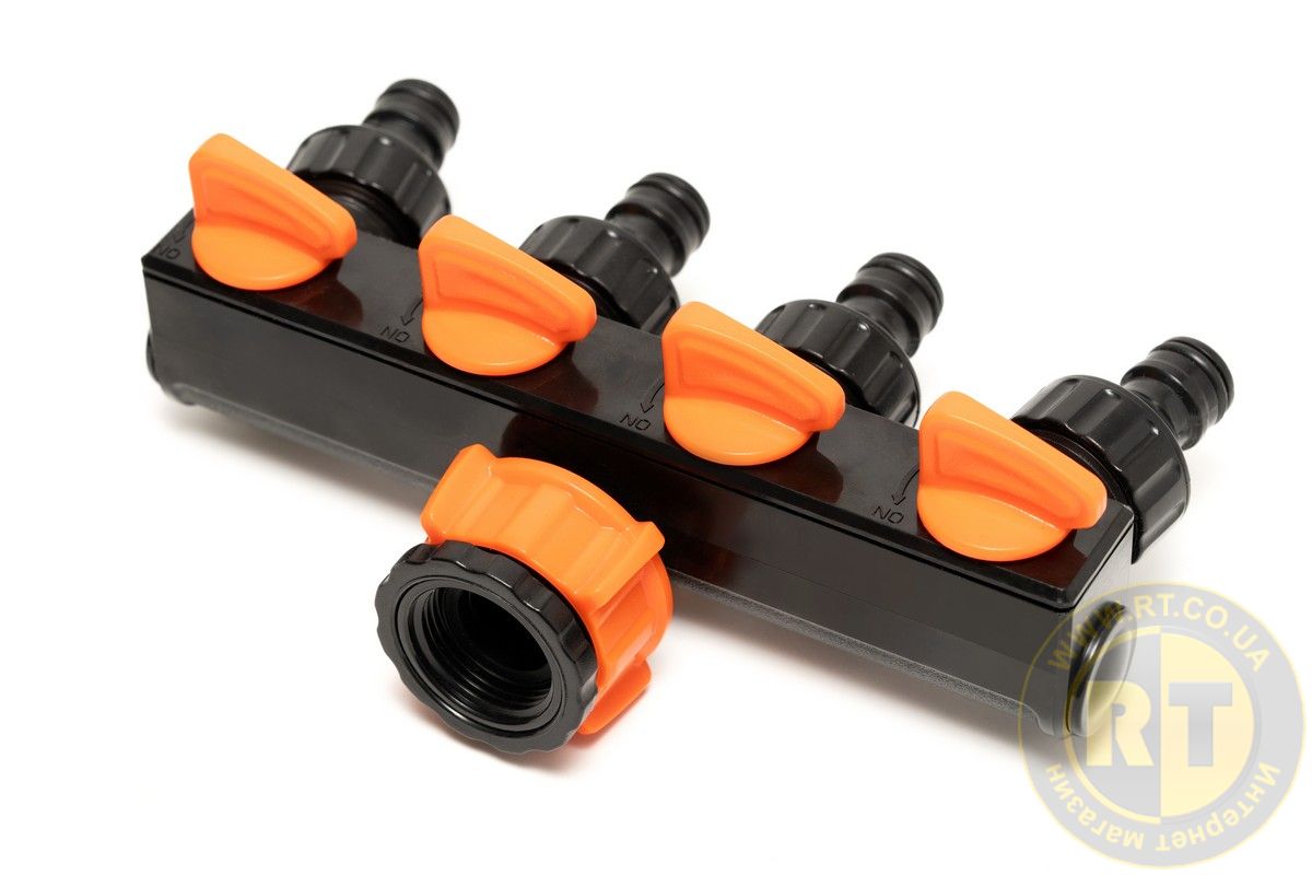 Распределитель на 4 канала — максимум эффективности с одного крана! • 4 отдельных канала с вентилями — независимое управление подачей воды на каждом выходе