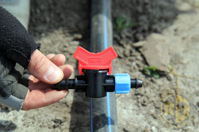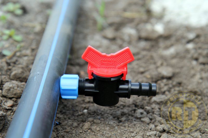 Кран стартовий з підтиском Presto-PS (OV-0516-G) використовується при створенні систем крапельного поливу із застосуванням сліпої трубки або багаторічної крапельної трубки з вбудованими емітерами діаметром 16 мм. Монтується стартовий кран в отвір у стінці магістральної ПВХ труби мінімального діаметра 25 мм, оптимальним є діаметр 32 мм. З протилежного боку крана одягається сліпа трубка, додаткова її фіксація не потрібна. Виготовляється кран з високоякісного ПВХ, стійкий до механічних навантажень, дії водорозчинних добрив і ультрафіолету. Ця продукція захищена фірмовим логотипом компанії Presto-PS, остерігайтеся підробок.