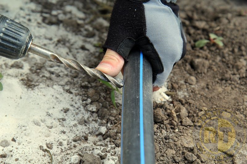- У магістральній трубі просвердлити отвір діаметром 8-9 мм;