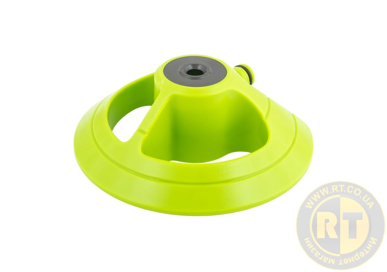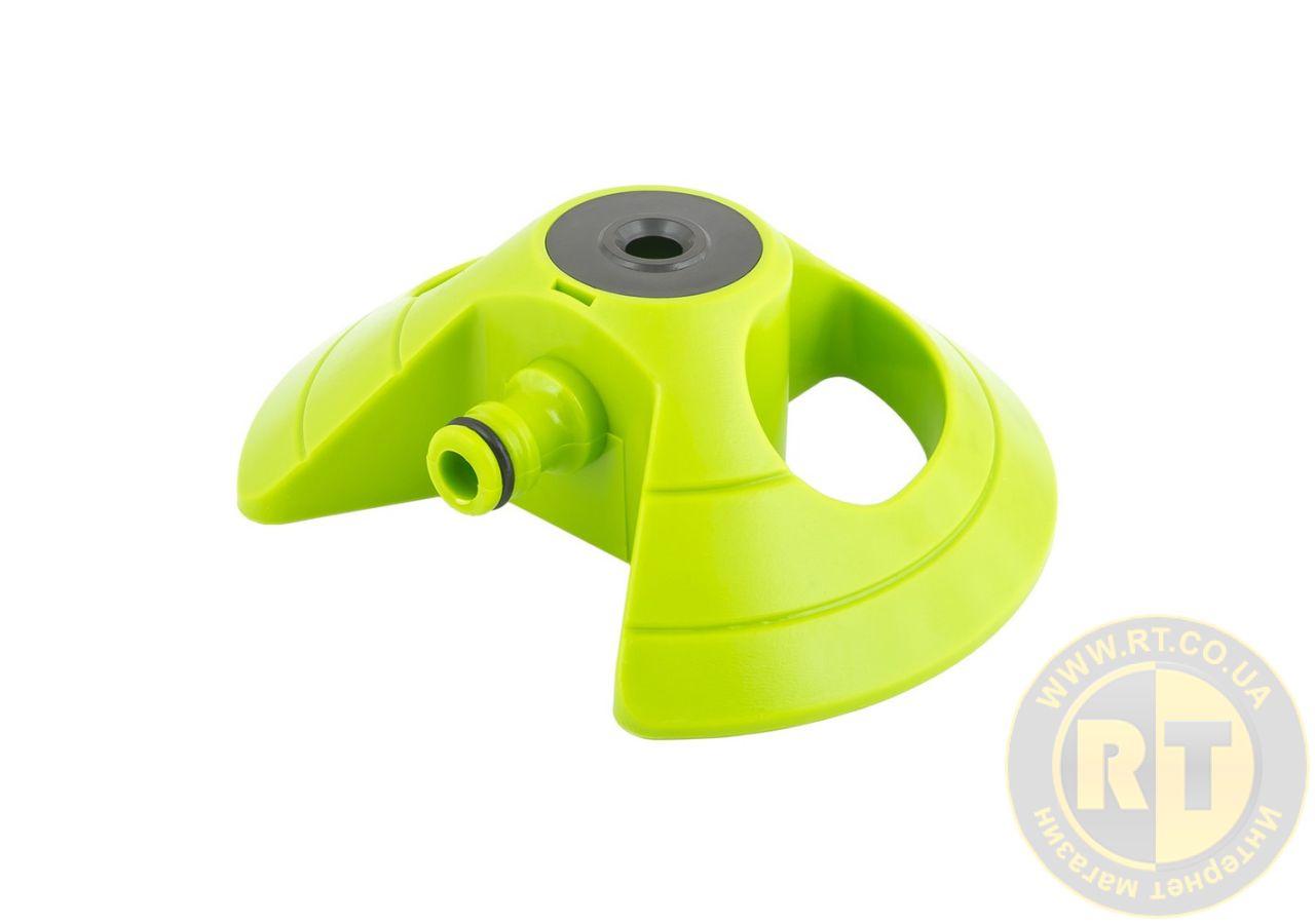 Ороситель 360° обеспечивает равномерный полив территории радиусом до 9 метров. Конструкция на стабильном пьедестале обеспечивает надежную фиксацию на поверхности, предотвращая переворачивание во время работы. Идеален для полива газонов, клумб и садовых участков.