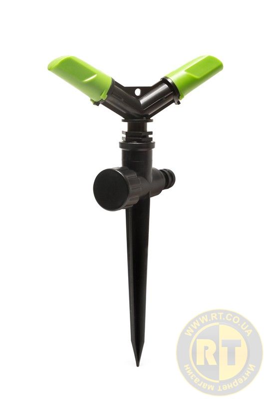 Вращающийся ороситель 2-х рожковый — просто воткни в землю, подключи шланг и наслаждайся автоматическим поливом! • вращающийся механизм с 2 рожками — равномерный полив в радиусе до 12 метров