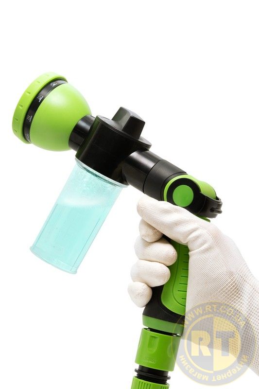Пистолет для полива со встроенной емкостью для шампуня или моющего средства — это идеальный инструмент для тех, кто ценит функциональность и удобство. Подходит не только для полива, но и для мытья автомобиля, велосипедов, садового инвентаря, окон или фасада дома. Дозатор позволяет подавать пену или моющее средство вместе с водой — без дополнительных устройств.
