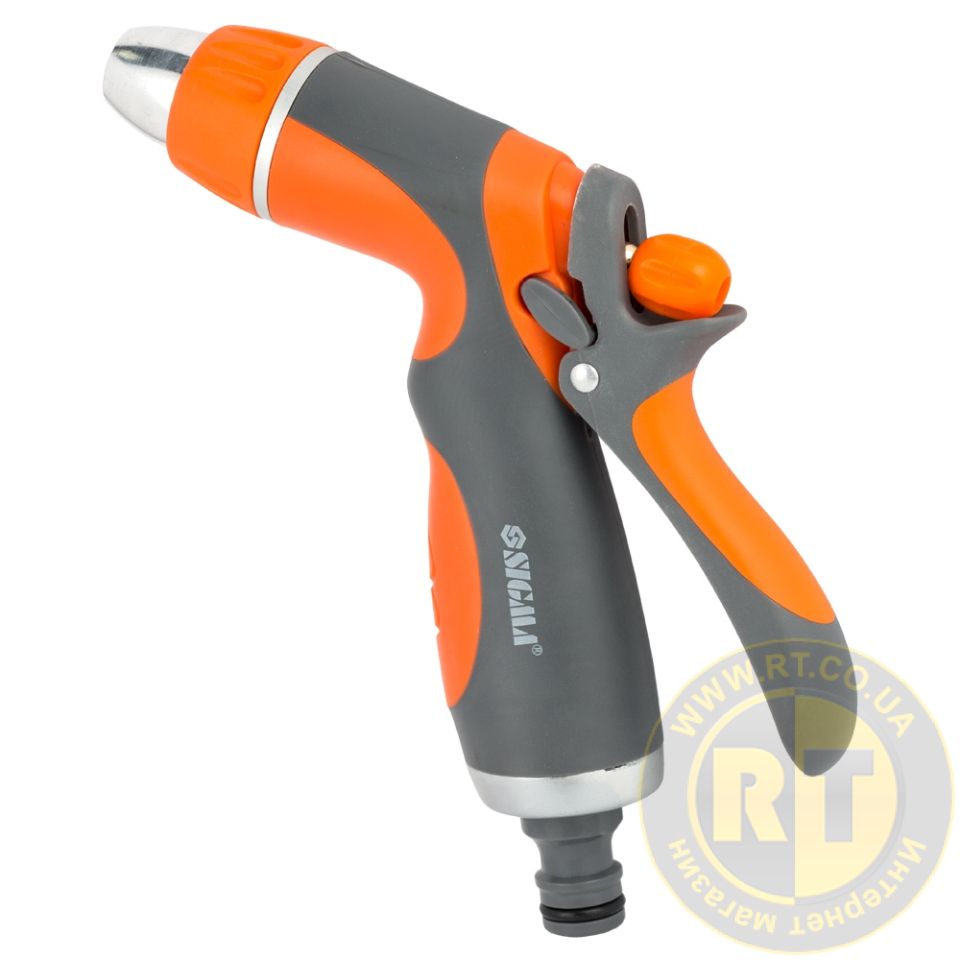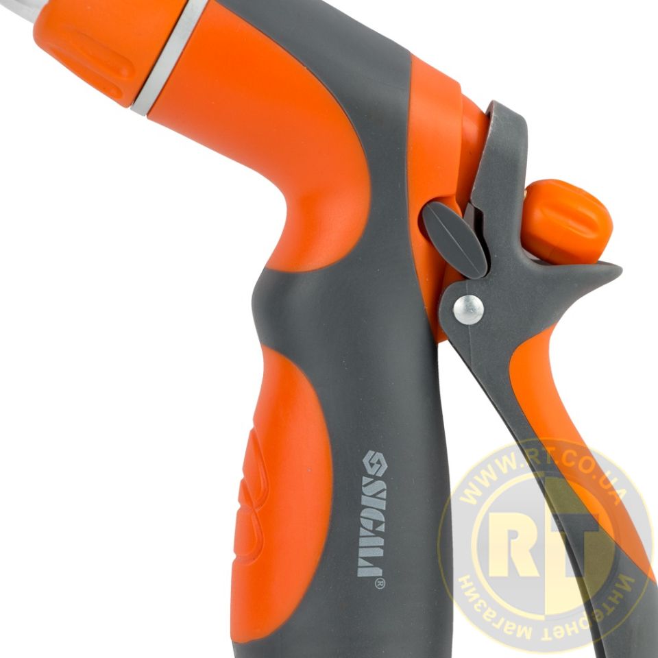 - Эргономичная рукоятка с фиксатором для непрерывного полива.