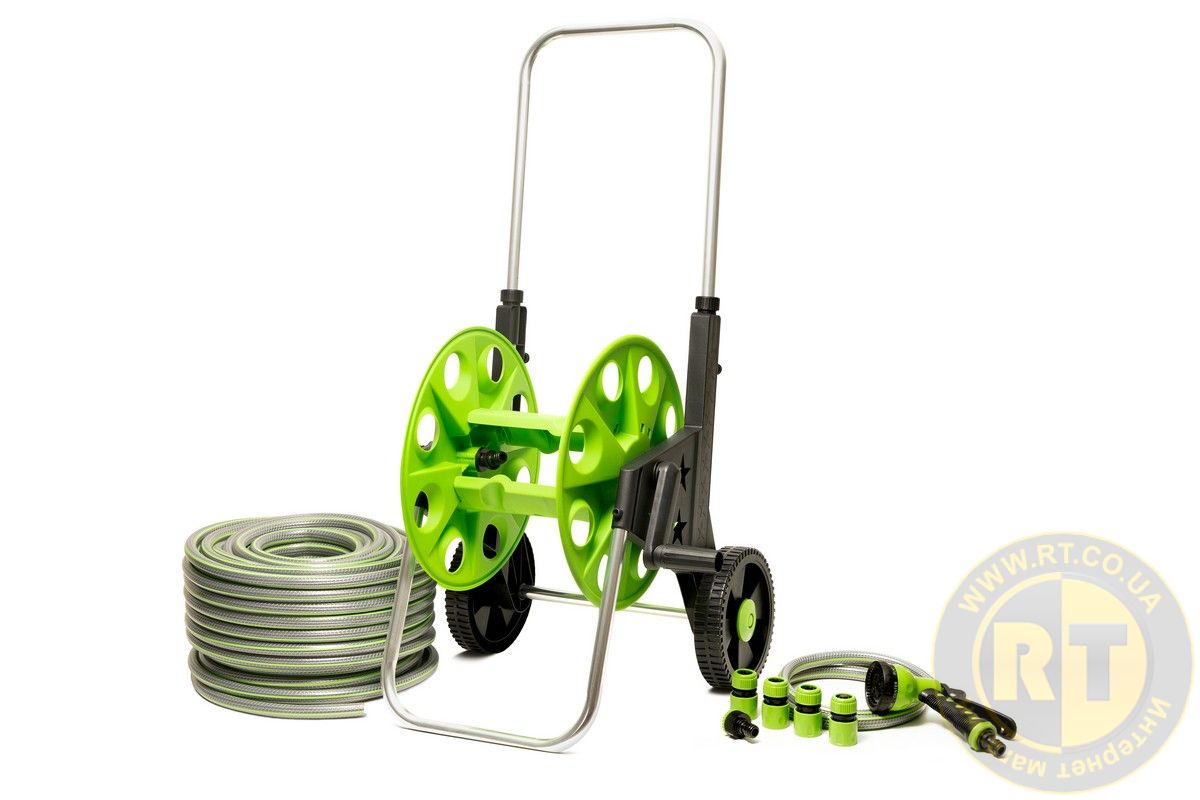 Практичный и долговечный помощник для любого хозяина! • 50 м шланга ½" — большой радиус полива для сада, газона или участка