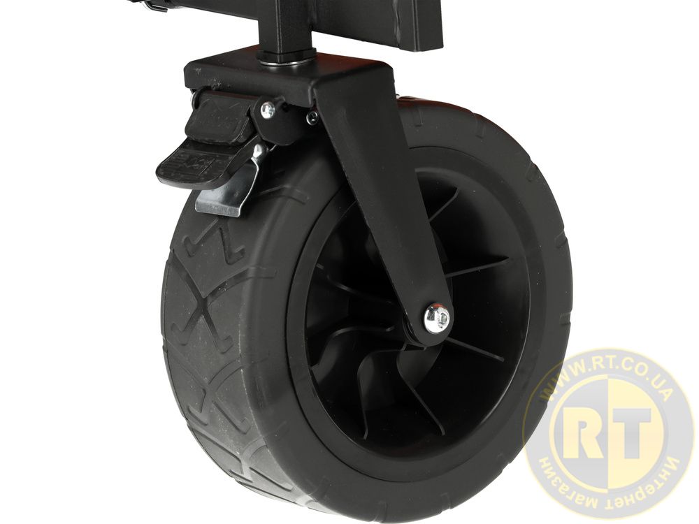 - Передние колеса вращаются на 360 °, оборудованные тормозами для легкого управления и маневрирующей коляски на Земле