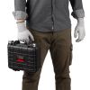 Кейс также оснащен ручкой для комфортной переноски. Все приборы и оборудование удобно размещаются в полости чемодана. Благодаря перфорированному и кубически рассеченному поролону – можно быстро сформировать требуемого размера ячейку.