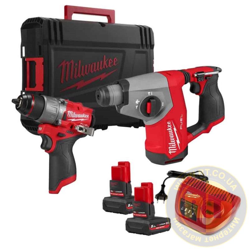 У комплект Milwaukee M12 FPP2BG2-502X входять 2 акумулятори M12 B5 ємністю 5 А·год, зарядний пристрій M12 C12 C та міцний кейс.