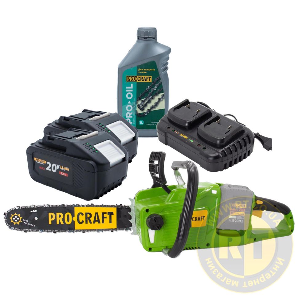 Акумуляторна пилка Procraft PCA40/2 + 2 акб 8Ач + ЗП charger20/2 + Олія для ланцюга 1л 402282