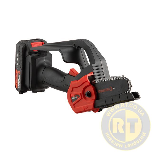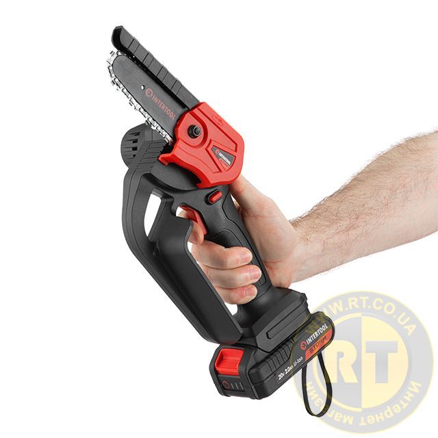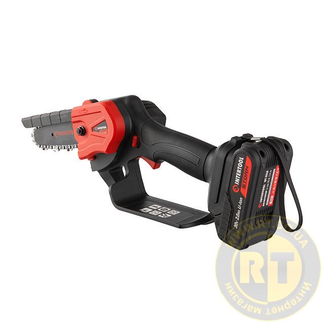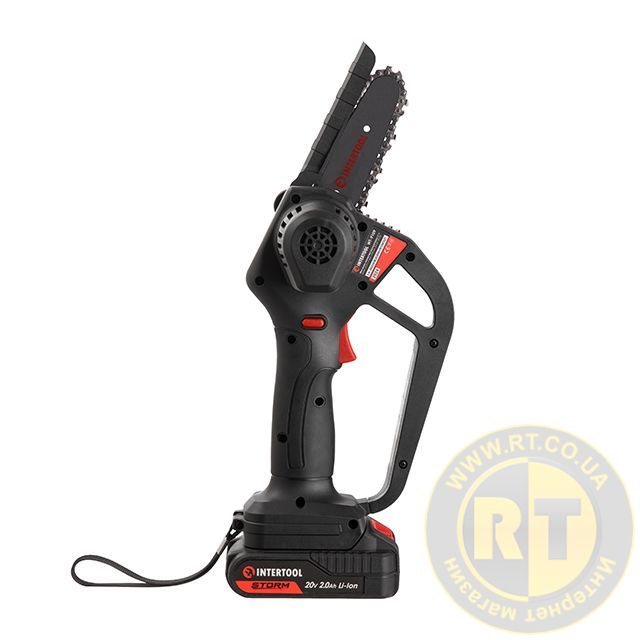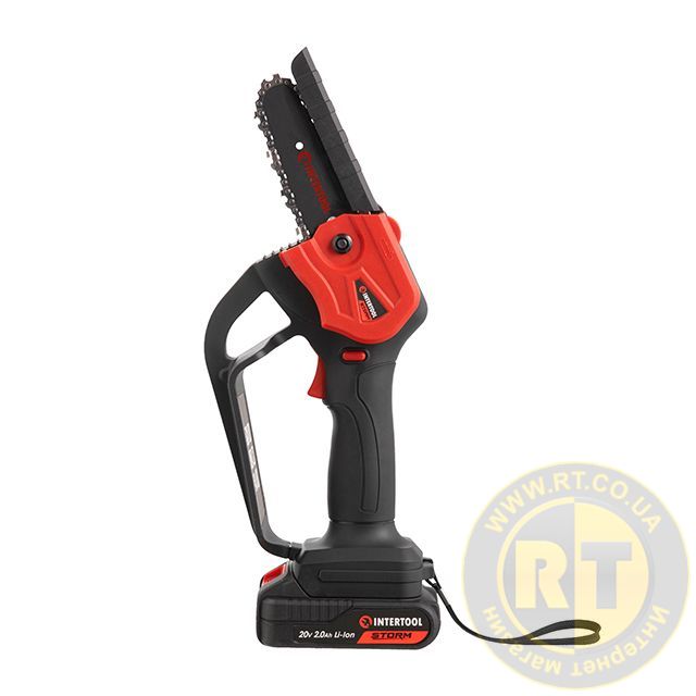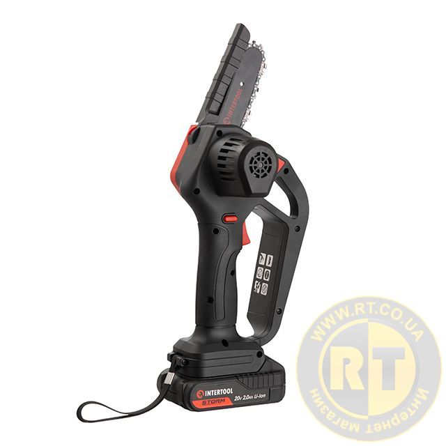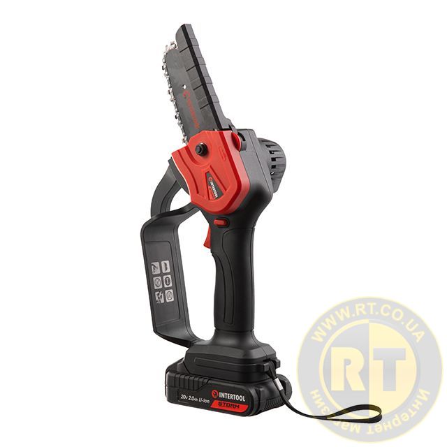 Міні-пилка ланцюгова акумуляторна 20 В, шина 10 см, 4 м/с, Li-ion, 2,0 Ач, ЗП 2А, STORM INTERTOOL WT-9109