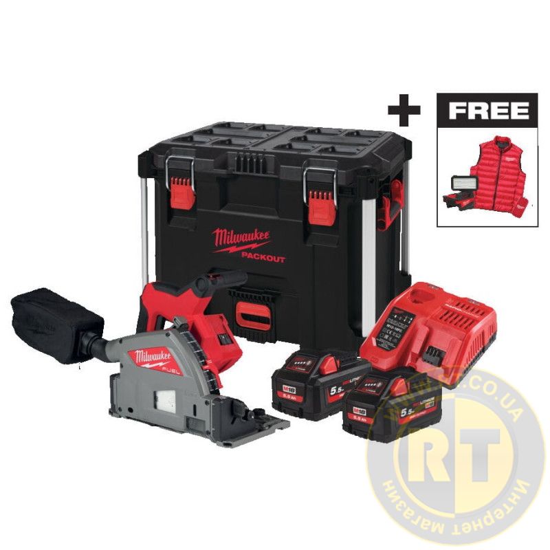 Пила дискова занурювальна акумуляторна безщіткова MILWAUKEE M18 FPS55MC-552P M18 ALIS-0+жилетка