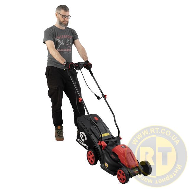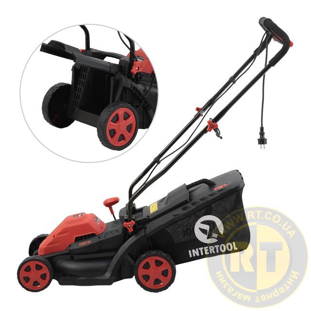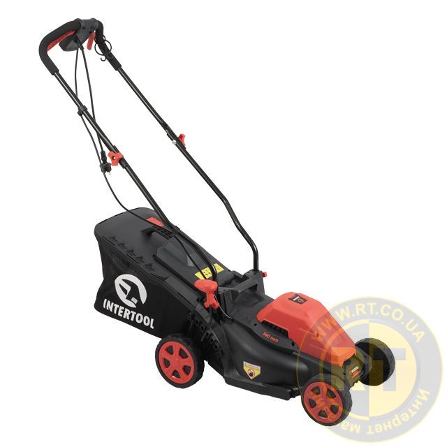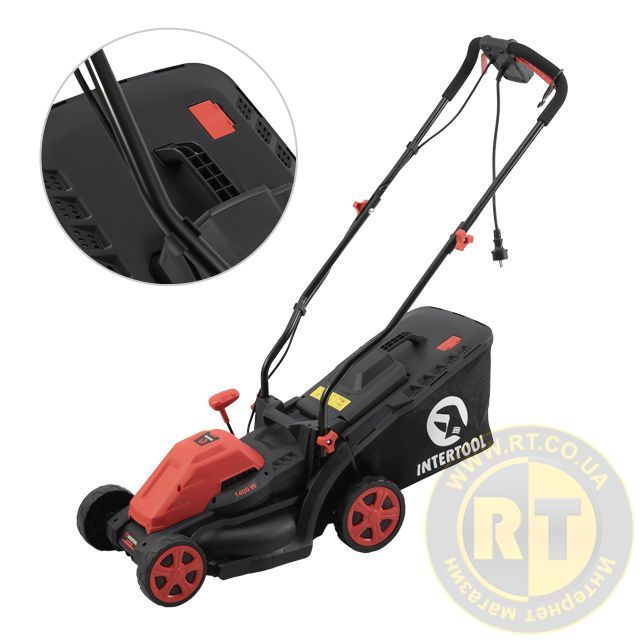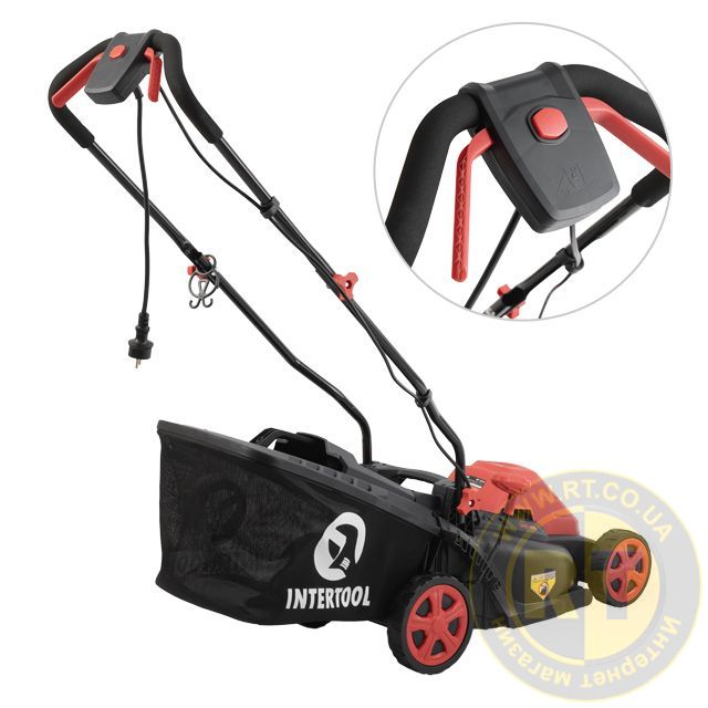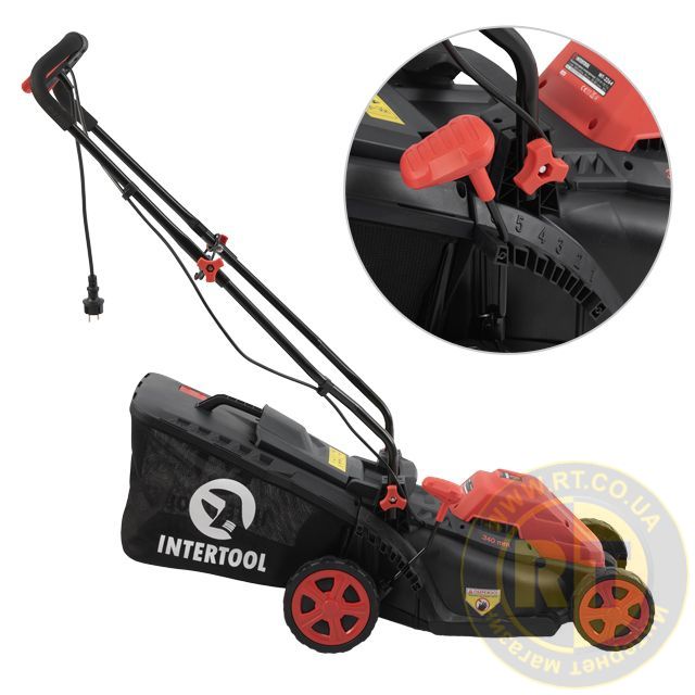 Газонокосарка електрична 1,4 кВт, 230 В~50 Гц, 3300 об/хв, ширина захвату 340 мм, висота зрізу 30-80 мм, контейнер 35 л, STORM INTERTOOL WT-2264
