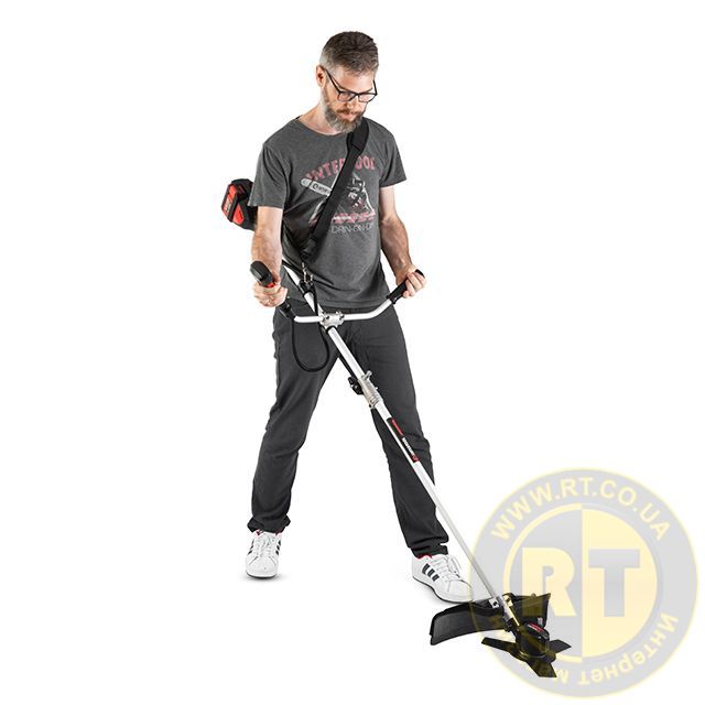 Ремінь з регулюванням відмінно розподіляє навантаження на спину оператора і забезпечує зручне розташування тримера в руках.