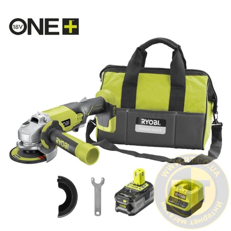 Шліфмашина кутова - болгарка акумуляторна безщіткова RYOBI, Ø115мм M18 R18AG-140S (ЗП+1x4,0Aг)