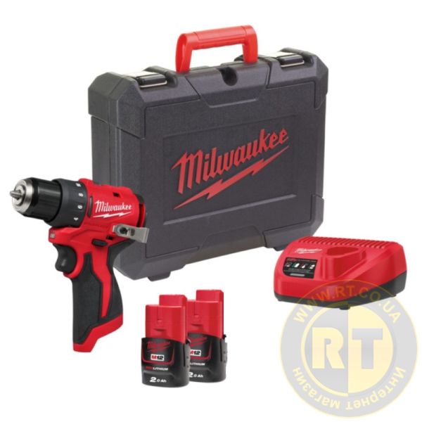 Дриль-шуруповерт акумуляторна безщіткова MILWAUKEE M12 BLDDRC-202С (40Нм) (ЗУ+2акк.Х2Ач+кейс)