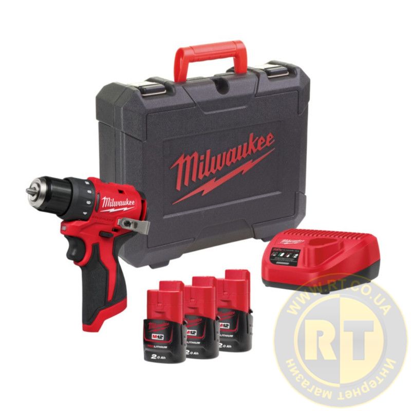 Дриль-шуруповерт акумуляторна безщіткова MILWAUKEE M12 BLDDRC-203С (40Нм) (ЗУ+3акк.Х2Ач+кейс)