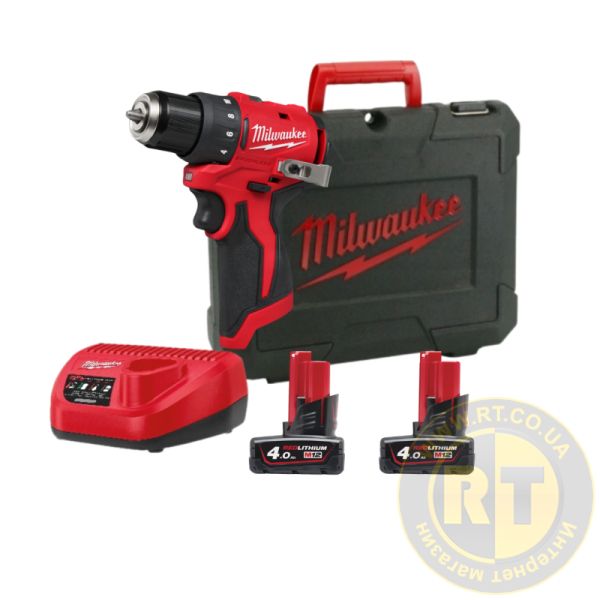 Дриль-шуруповерт акумуляторний безщітковий MILWAUKEE M12 BLDDRC-402С (40Нм) (ЗУ+2акк.Х4Ач+кейс)