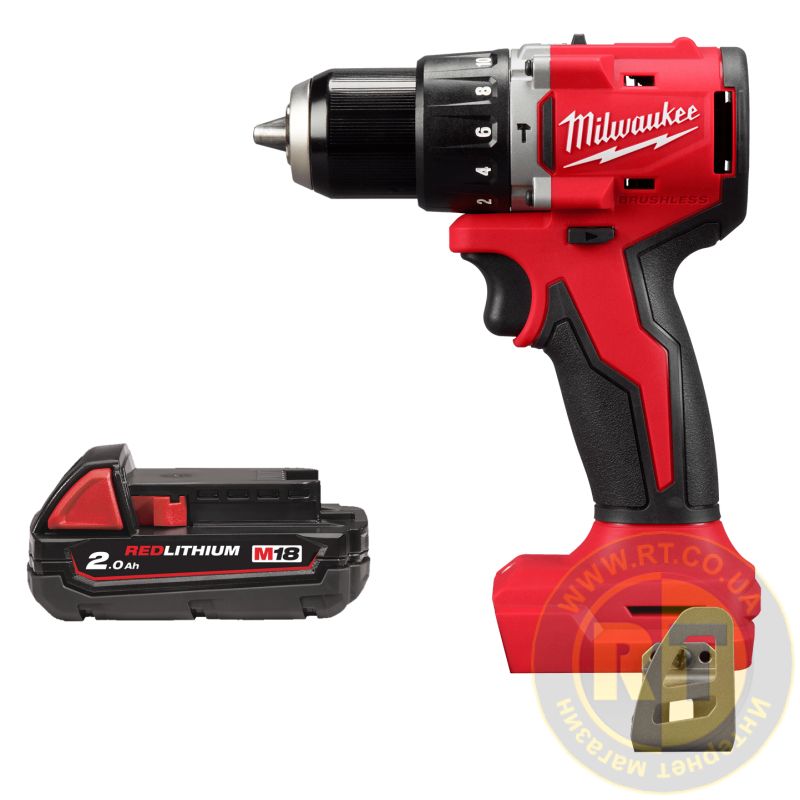 Дриль-шуруповерт акумуляторна безщіткова ударна MILWAUKEE M18 BLPDRC-0 (60Нм) (каркас) + M18 B2