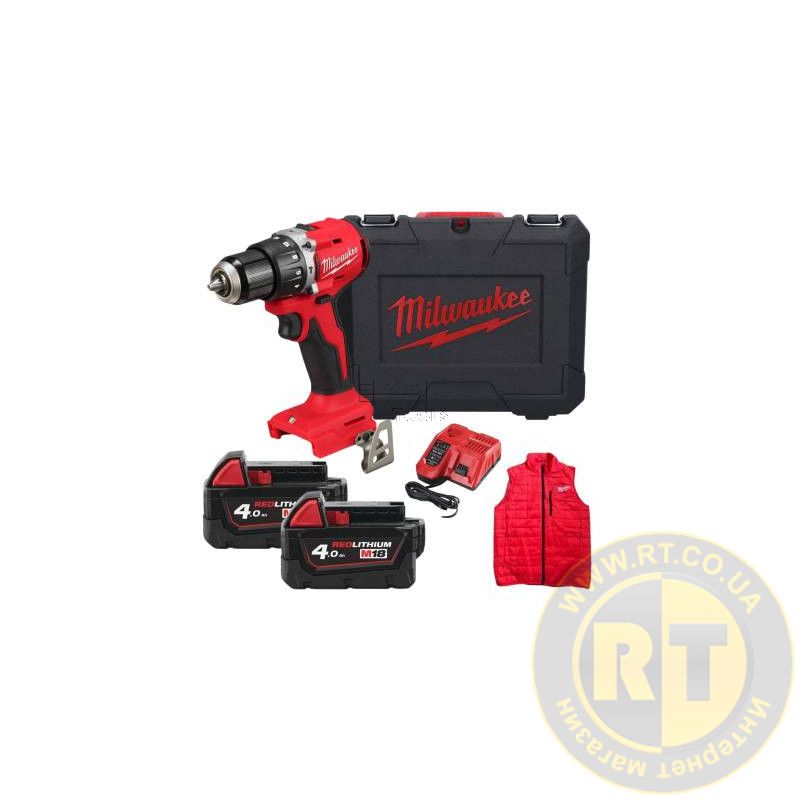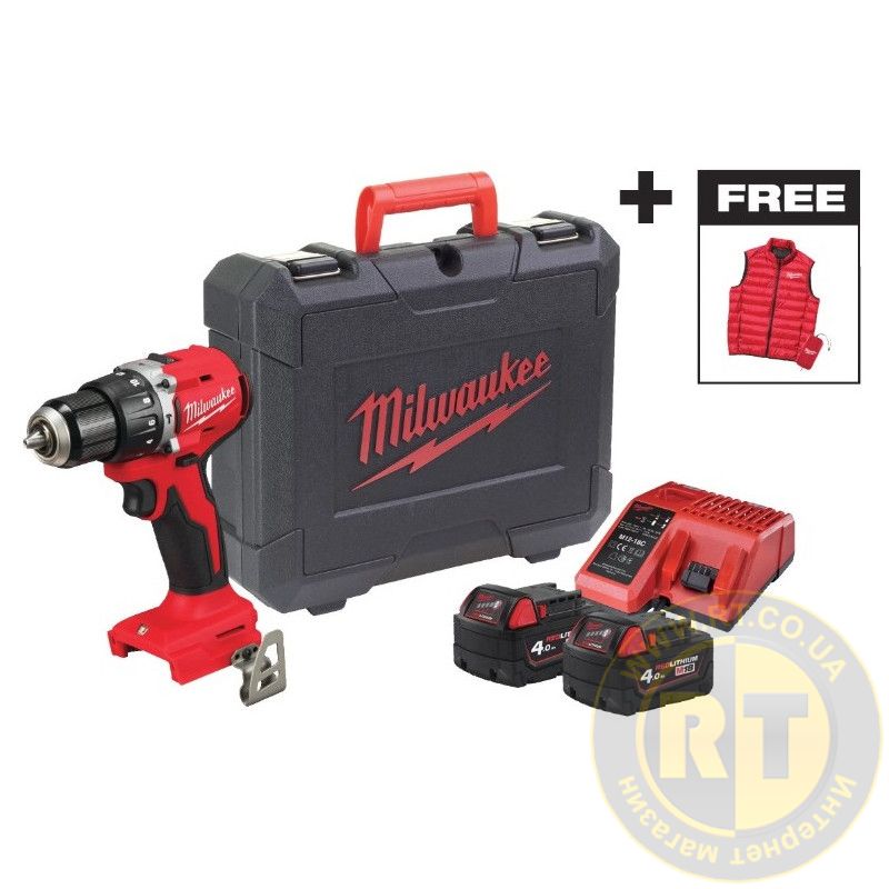 Дриль-шуруповерт акумуляторна безщіткова ударна MILWAUKEE M18 BLPDRCMC-402C (60Нм) + ЖИЛЕТКА