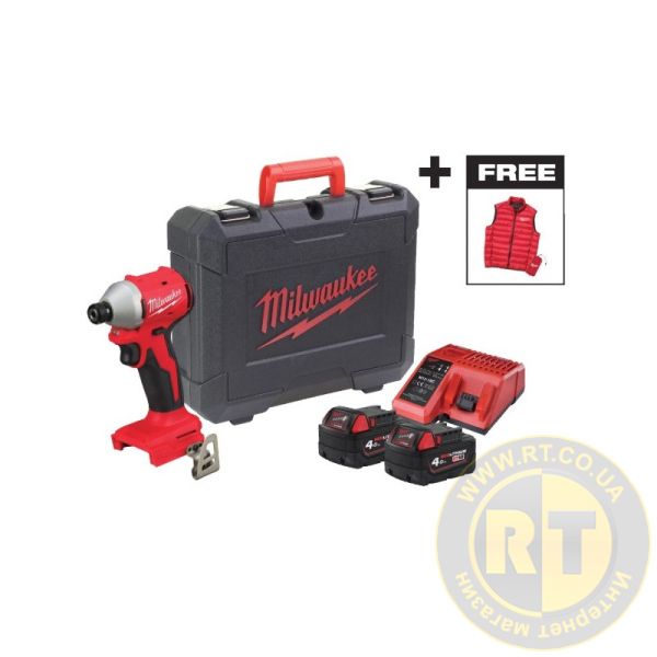 Шуруповерт ударний акумуляторний безщітковий MILWAUKEE (190 Нм) M18 BLIDRCMC-402C + ЖИЛЕТКА