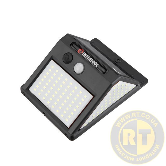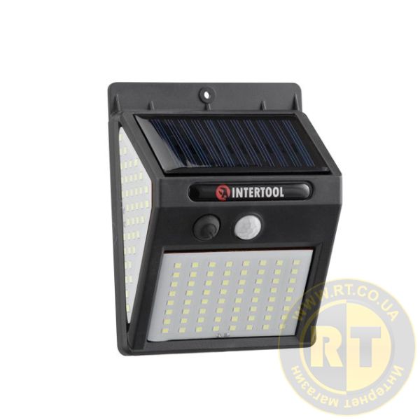 Світильник акумуляторний настінний 144 SMD, вуличний, сонячна панель, датчик руху INTERTOOL LB-0114