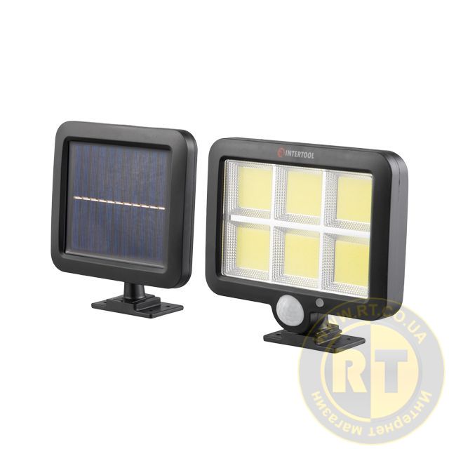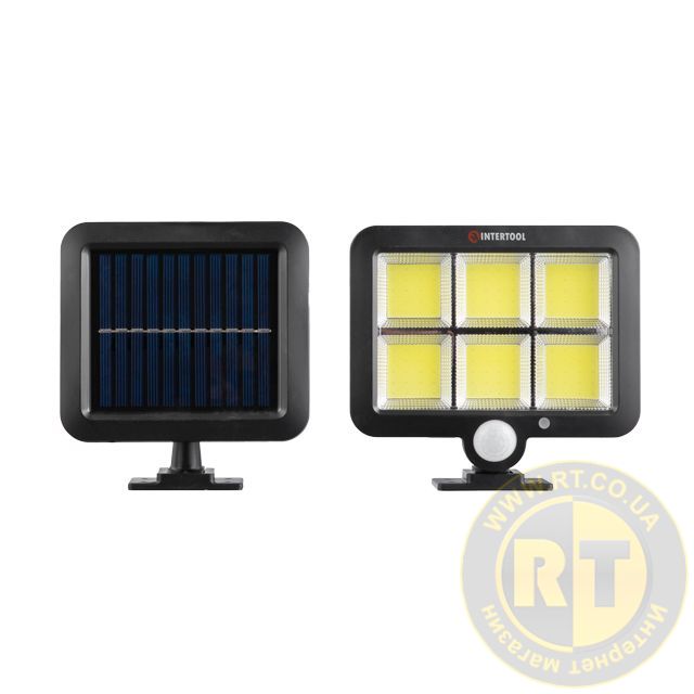 Світильник акумуляторний настінний 6 COB, виносна сонячна панель, датчик руху INTERTOOL LB-0116