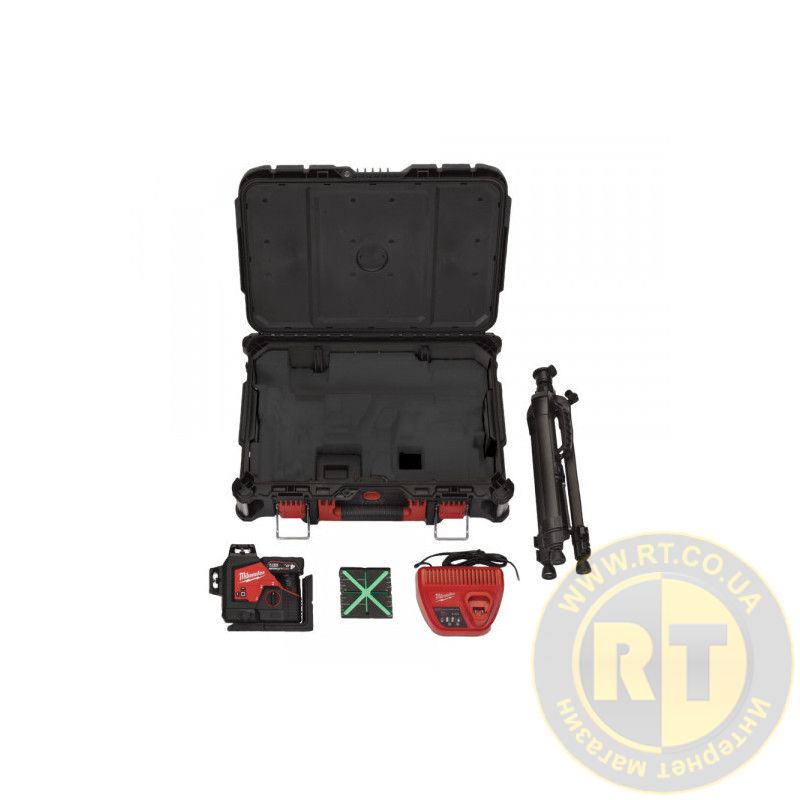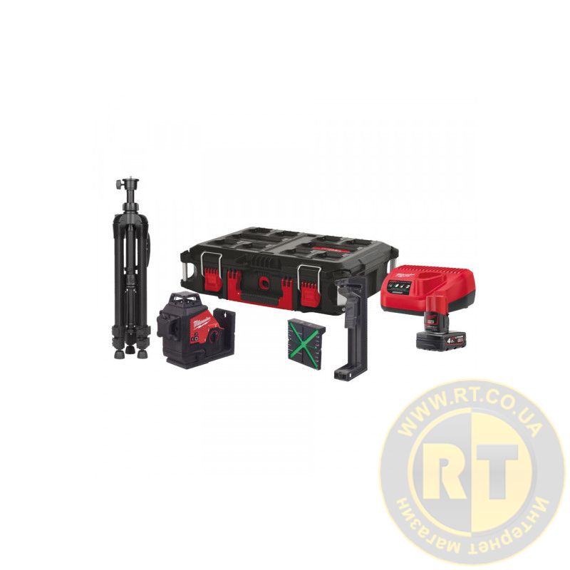 Нівелір лазерний акумуляторний 3D MILWAUKEE, M12 3PLSKIT-401P (ЗУ+1акк.Х4Ач+обладнання+PACKOUT)